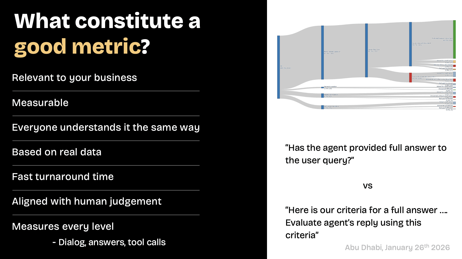 A recurring theme in the keynote was that technical correctness does not guarantee user trust. For instance, an agent announced it was preparing a data visualization but sometimes failed to show one. Internally, the system was actually behaving as designed, but from the customer’s perspective? It was broken and even untrustworthy.
